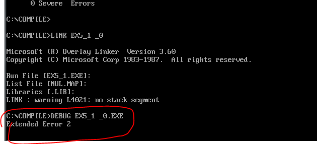 如果将(1)、(2)、(3)题中的“end srtart”改为“end” 不指明程序入口,程序执行情况会怎样?