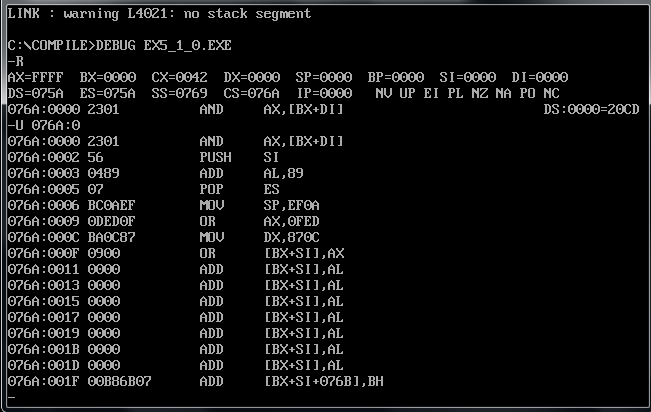 原理:将[bx],以及[bx+10H]中的数据放在ax寄存器中,c1内存地址是[bx+20h]