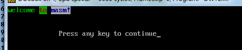 ; p187 实验9 assume ds:data, cs:code data segment db 'welcome to masm!' db 2H,24H,71H ;字符串属性值 data ends code segment start: mov ax,data mov ds,ax ;字符串及属性值所在段的段地址送入ds mov ax,0b800H mov es,ax ;80×25彩色字符模式显示缓冲区段地址送入es ; 添加代码,通过循环逐个将每个字符及其属性送入相应的显示缓冲区对应行 ; 即:将data段的字符及属性通过循环逐个mov到显示缓冲区(es)段相应的单元内 ; 可以先尝试分别写三段代码,每次完成一行的显示 ; 程序运行起来后,再尝试通过灵活的寻址方式和循环,对三段代码修改和简化 ; 学习第10章子程序后,还可以进一步完善优化,设计子程序,将行号、列号、颜色属性设置成入口参数 mov cx,7;>=7 都是字母变色 mov si,0 mov di,0 s:mov al,ds:[si] mov es:[di],al inc di mov al,2 mov es:[di],al inc si inc di;the even stores the value loop s mov cx,2 inc si add di,2 s1: mov al,ds:[si] mov es:[di],al inc di mov al,24H mov es:[di],al inc di inc si loop s1 mov cx,5 inc si add di,2 s2: mov al,ds:[si] mov es:[di],al inc di mov al,71h mov es:[di],al inc di inc si loop s2 mov ax,4c00h int 21h code ends end start