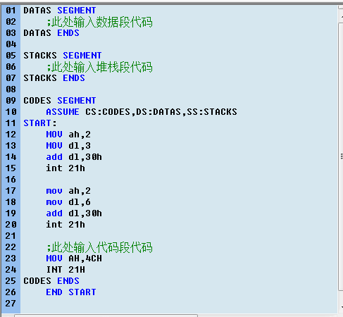 第 1 步,编写汇编源程序 t2.asm,源程序代码如图 1-2 所示。