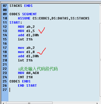 (2) 将 line4 和 line9 种寄存器 dl 的值分别修改为 0~9 中任何一个数字,重新汇编→ 连接→运行,观察结果的变化。