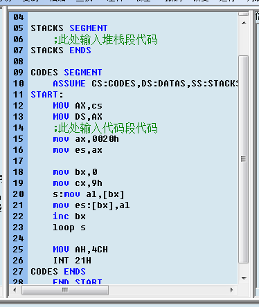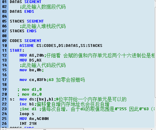 这道题 每次传输的不是一定值,那么我需要两个变量 一个bx用来存放偏移地址 另一个dx 用来进行赋值的数 每次根据循环进行自增(地址在变,值也在变)