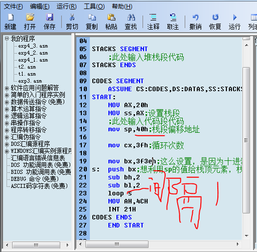 总结的话一般都放在每个实验的之后的。不过这里我觉得 设计一个程序之前至少不是那么会的时候可以先对教材知识点进行了解;再开始对编程内容进行思路整理,和框架搭建。先这里。第一个实验任务我可以自己独立完成,比如栈是利用两个独立的寄存器进行存拿数据,CX中的值是指令的长度等等,一些细节的掌握。需要利用时间去积累。