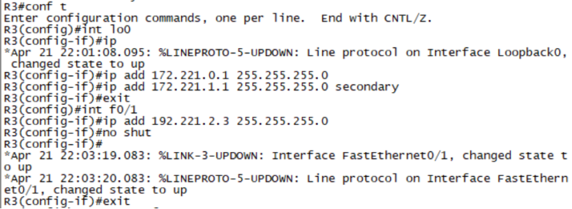 O IA 172.221.0.1/32 [110/3] via 192.221.1.2, 00:16:13, FastEthernet0/0