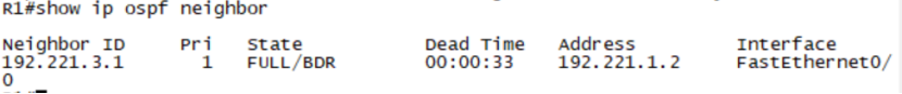 O IA 192.221.2.0/24 [110/2] via 192.221.1.2, 00:17:20, FastEthernet0/0