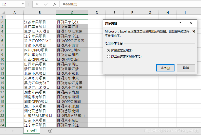 可以看到相似项目“小米项目”被翻转后均为“目项米小”,结果相同,这样就利用排序方法对相似项目进行归类。