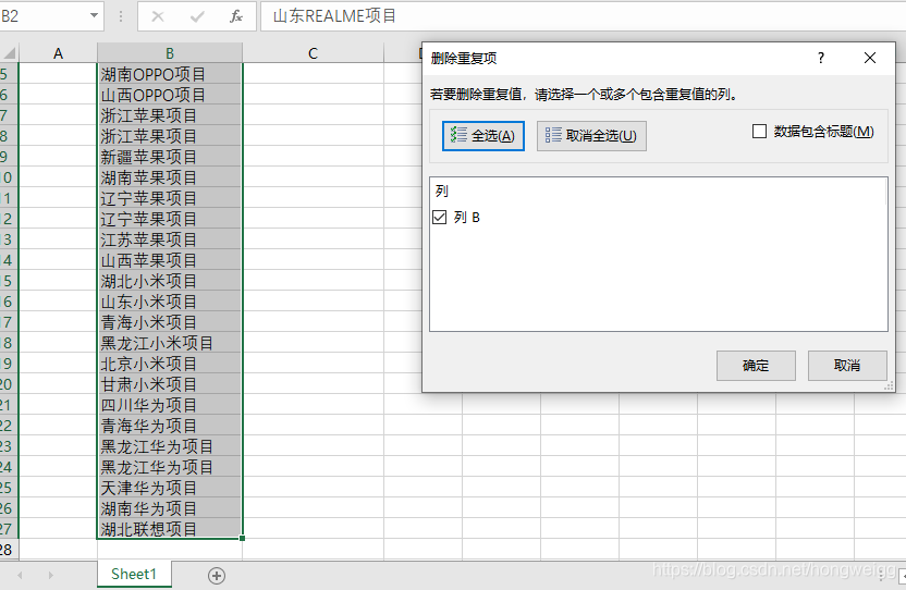 2、EXCEL去重示例: https://download.csdn.net/download/hongweigg/14022340