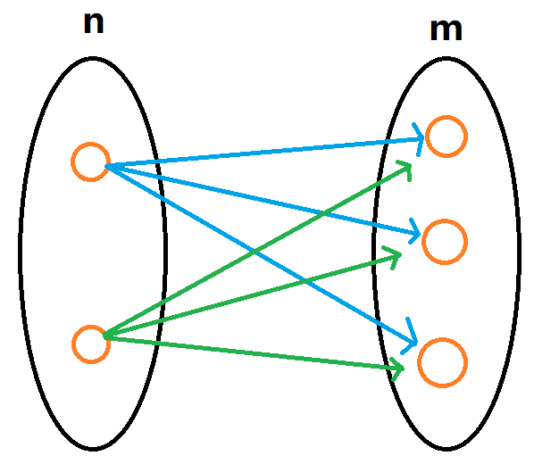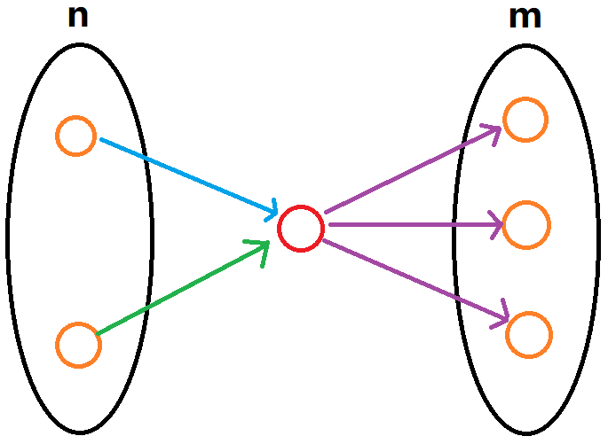 存在一个大小为\(n\)的点集\(V_1\) 和 大小为\(m\)的点集\(V_2\),\(V_1\)中的每个点都需要向\(V_2\)中的每个点连一条边