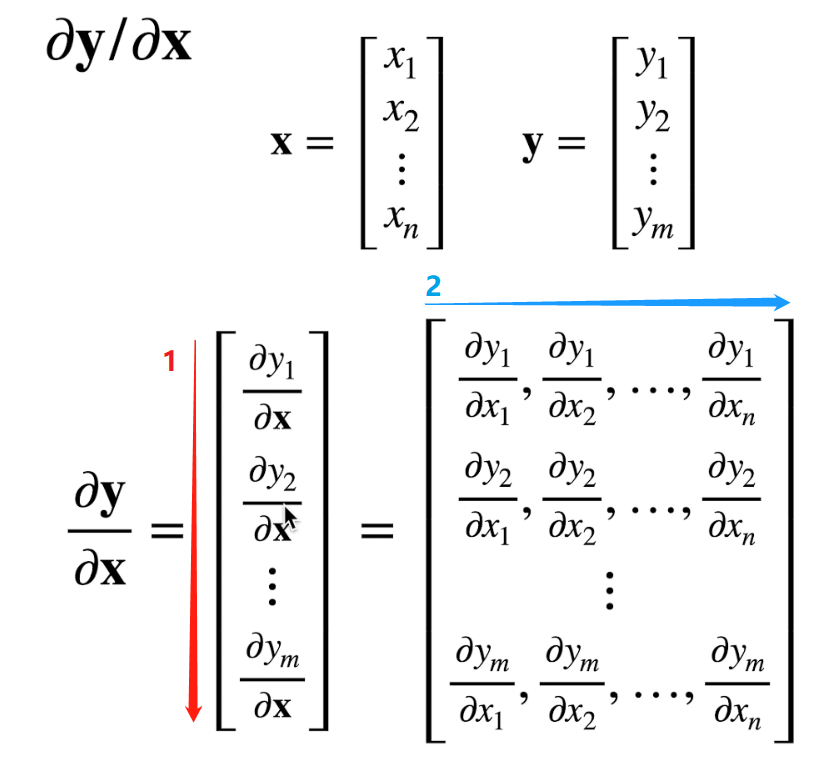 根据下图求导时的展开规则,求导后矩阵行数同\(Y\)的行数,列数同\(X\)的行数