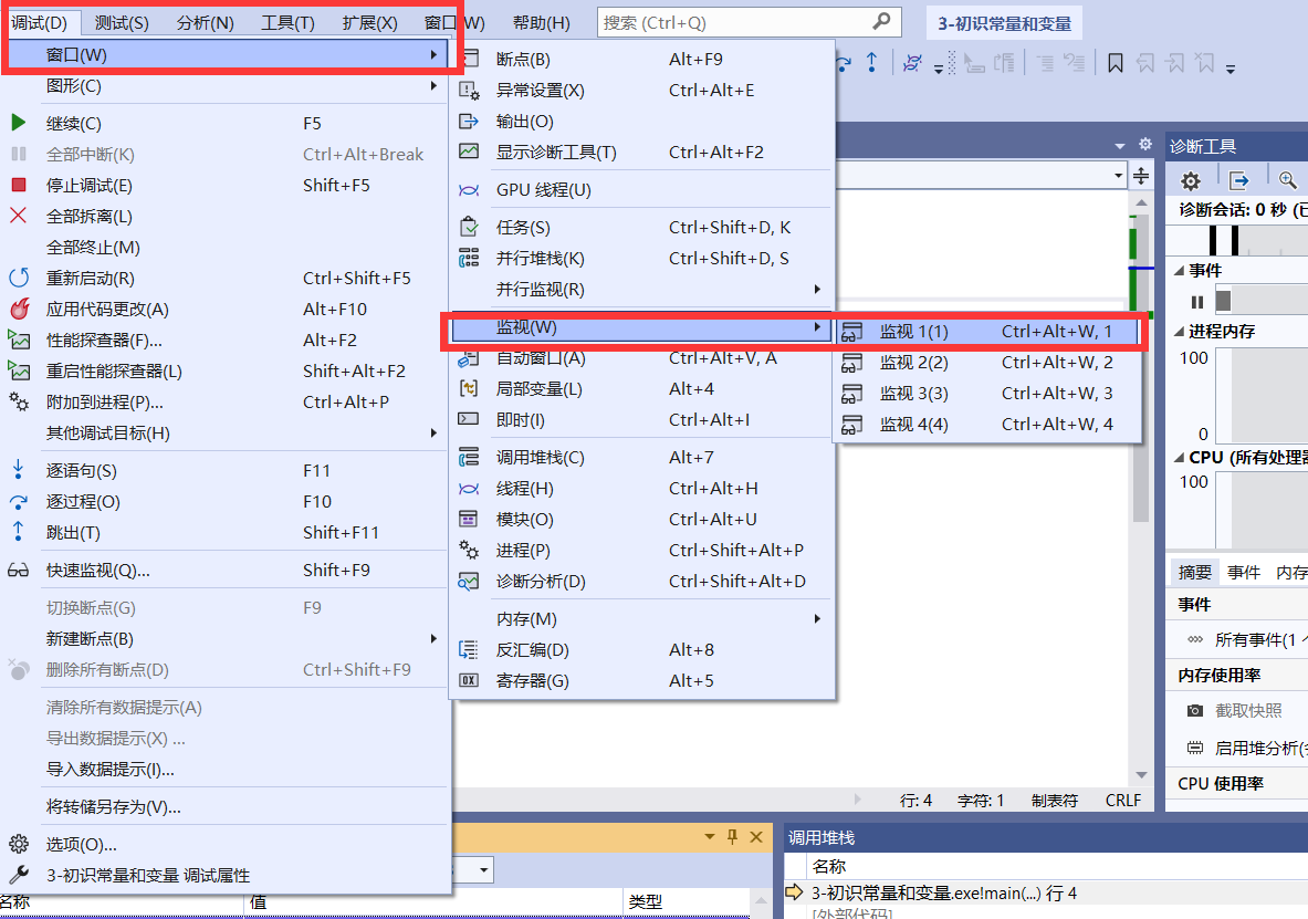 按F10调试,在调试中选择窗口-监视,选择其中一个