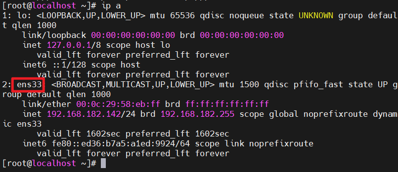 好了,现在知道网卡名叫ens33,接下来就是配置了