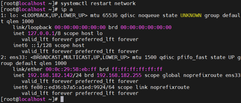 systemctl restart network //重启整个网络服务(包括网络接口、DNS解析等)