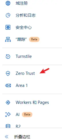 1.打开 https://dash.cloudflare.com/ 登录账号,再左侧任务栏选中zero trust