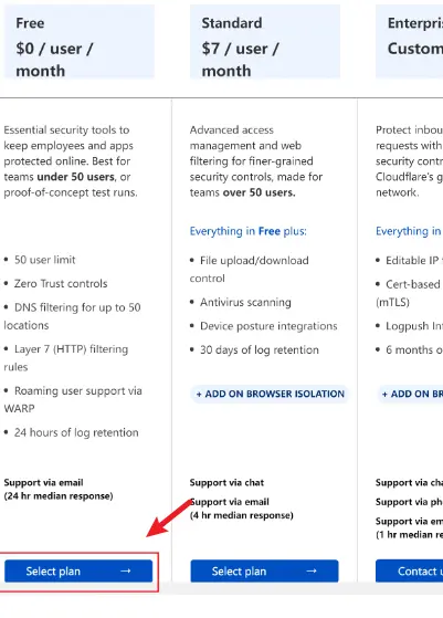 3.选择左边的免费的方案,点击“Select Plan”