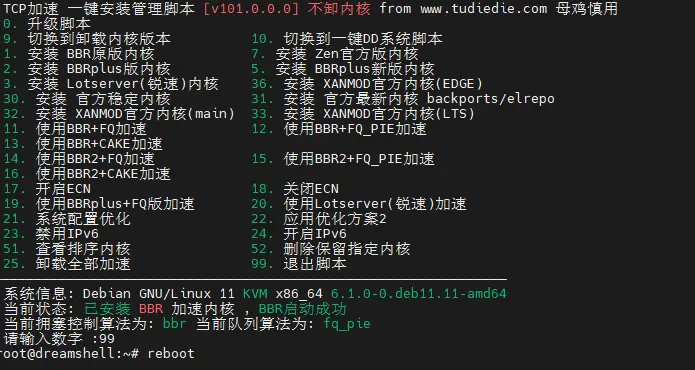 wget -O tcpx.sh "https://github.com/tudiedie/Linux-NetSpeed-TuDieDie/raw/master/tcpx.sh" && chmod +x tcpx.sh && ./tcpx.sh