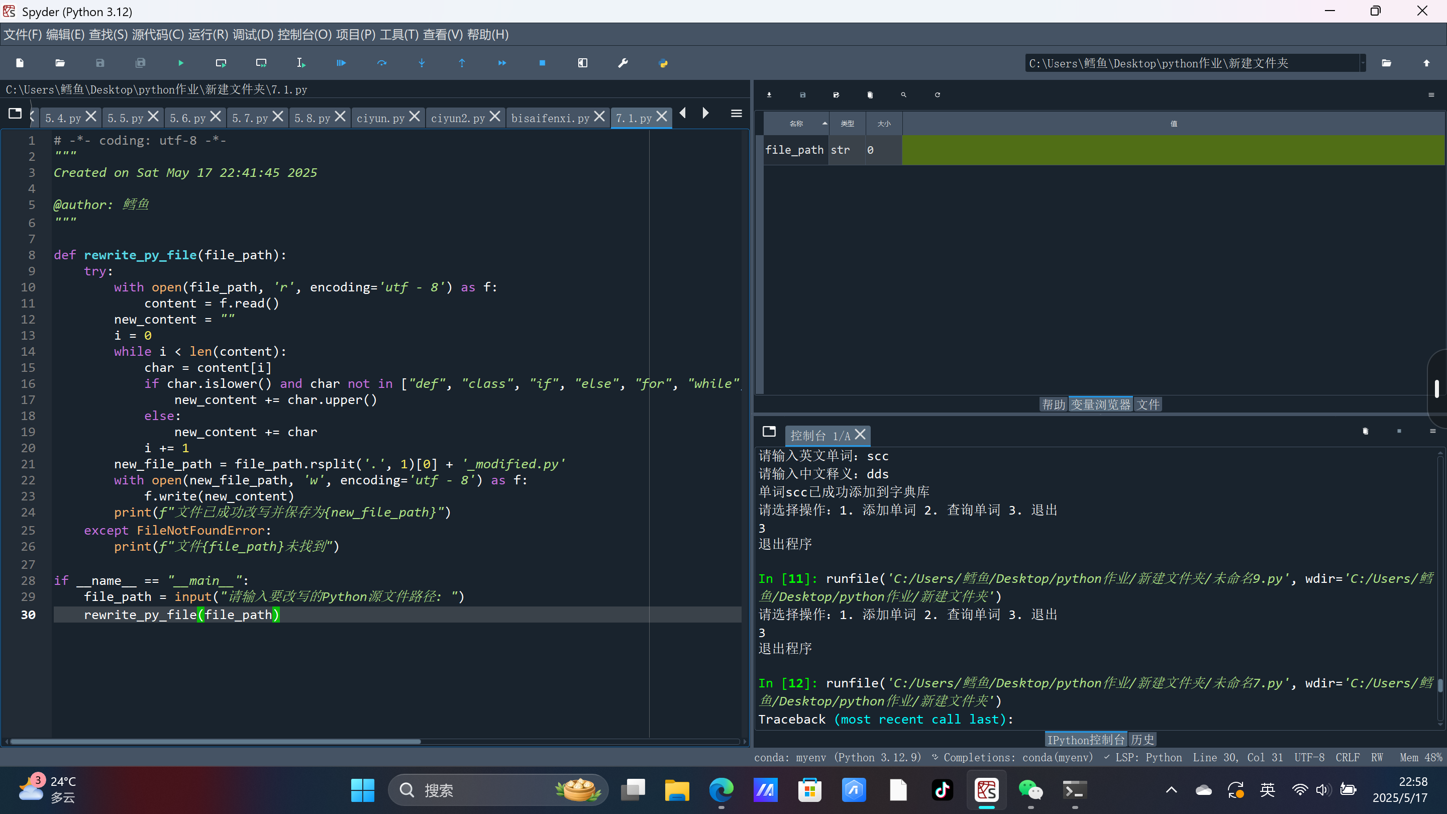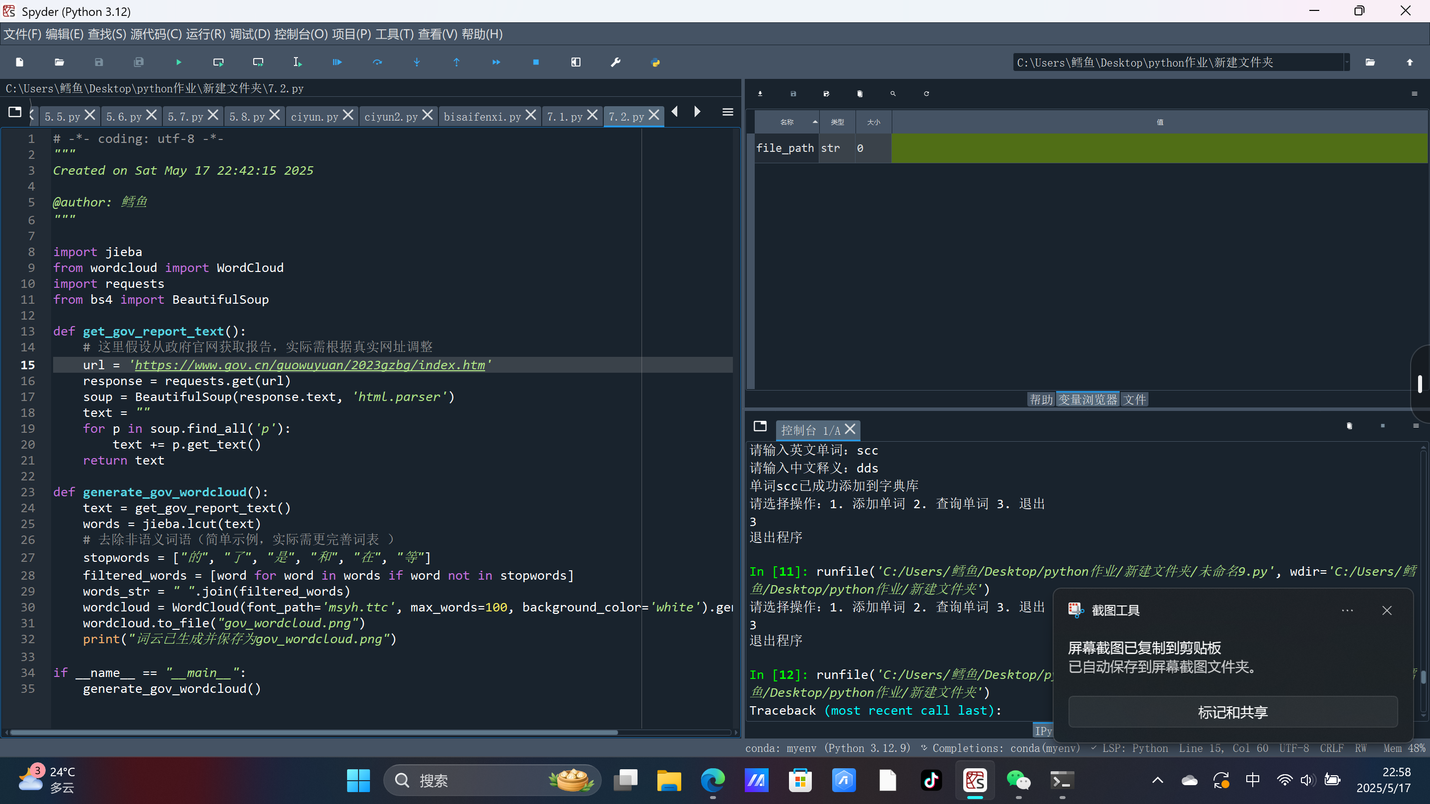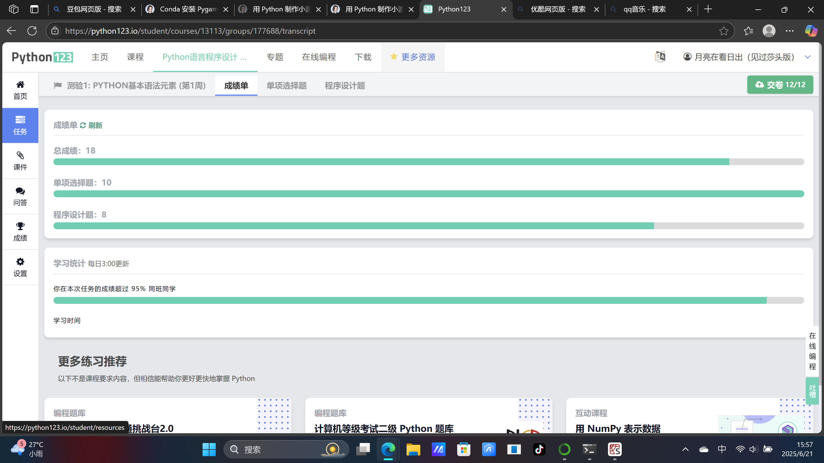 摘要: Python语音基础学习报告:学习心得与体会 初次接触Python时,其简洁的语法和灵活的特性让我印象深刻。与传统编程语言相比,Python以缩进代替括号的语法规则,不仅降低了代码的冗余度,还让我养成了更规范的逻辑思维。例如,在学习条件语句(if-elif-else)和循环结构(for、while)