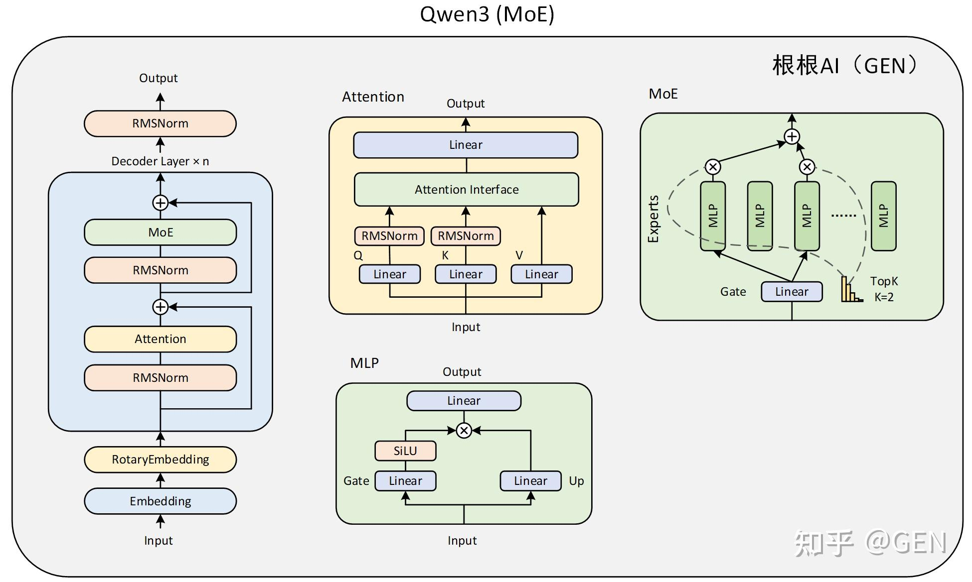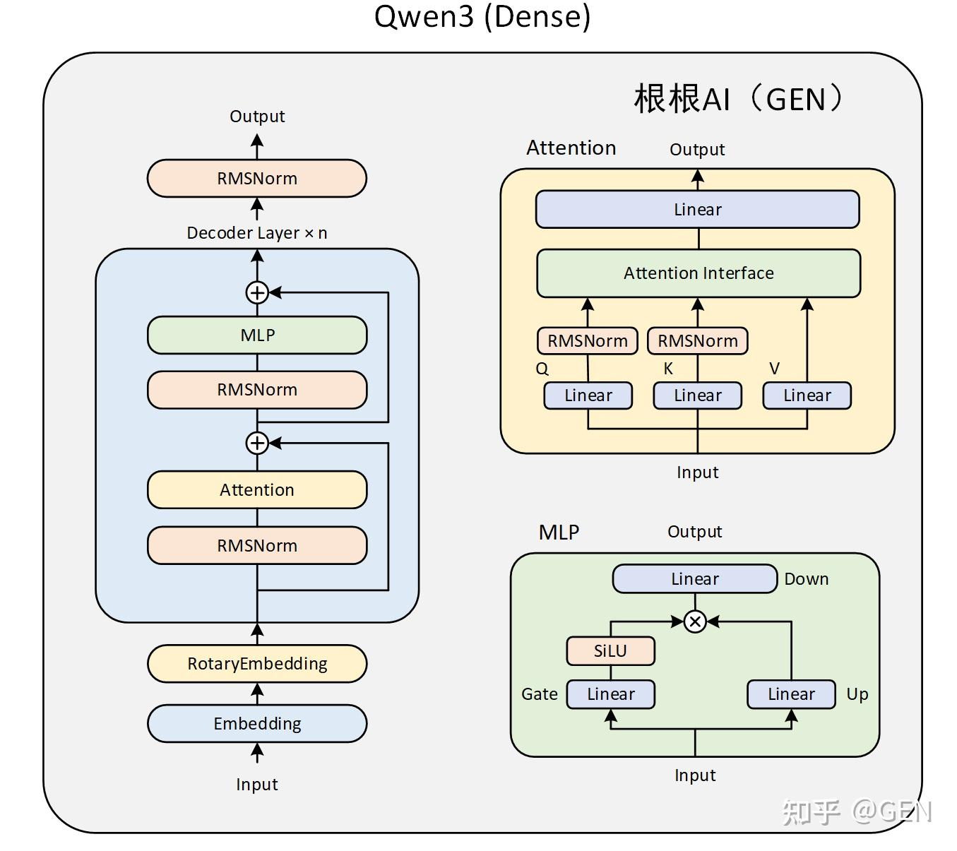 Qwen3 主要由四个部分组成: