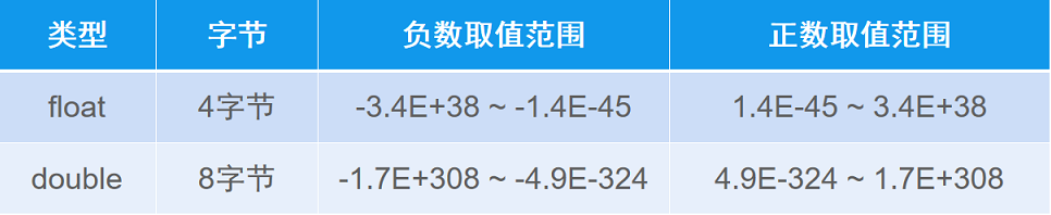 // float 取值范围 负数-3.4E+38 ~ -1.4E-45 正数1.4E-45 ~ 3.4E+38