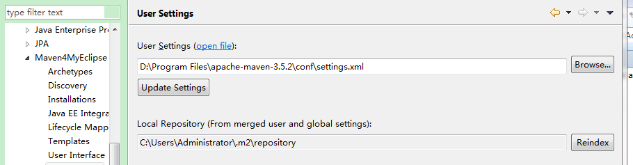 3、打开Window->Preferences->Maven4MyEclipse->User Settings,配置如下并Apply: