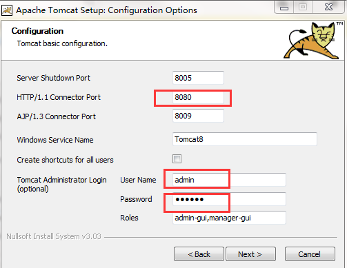 5.设置端口号,登录名称和密码