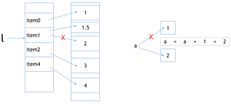 >>> l = [1, 2, 3, 4] >>> id(l) 1619162612424 >>> l[1] = 1.5 >>> id(l) 1619162612424 >>>