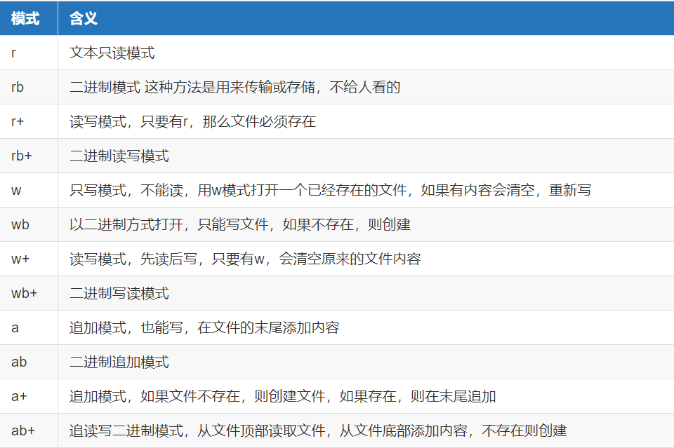 - rb,直接读取文件保存时原生的0101010,在Python中用字节类型表示