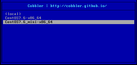 [root@centos7 ~]# cobbler import --path=/mnt/cdrom --name=CentOS7.6-x86_64 --arch=x86_64 task started: 2020-01-13_223456_import task started (id=Media import, time=Mon Jan 13 22:34:56 2020) Found a candidate signature: breed=redhat, version=rhel6 Found a matching signature: breed=redhat, version=rhel6 Adding distros from path /var/www/cobbler/ks_mirror/CentOS7.6-x86_64: creating new distro: CentOS7.6-x86_64 trying symlink: /var/www/cobbler/ks_mirror/CentOS7.6-x86_64 -> /var/www/cobbler/links/CentOS7.6-x86_64 creating new profile: CentOS7.6-x86_64 associating repos checking for rsync repo(s) checking for rhn repo(s) checking for yum repo(s) starting descent into /var/www/cobbler/ks_mirror/CentOS7.6-x86_64 for CentOS7.6-x86_64 processing repo at : /var/www/cobbler/ks_mirror/CentOS7.6-x86_64 need to process repo/comps: /var/www/cobbler/ks_mirror/CentOS7.6-x86_64 looking for /var/www/cobbler/ks_mirror/CentOS7.6-x86_64/repodata/*comps*.xml Keeping repodata as-is :/var/www/cobbler/ks_mirror/CentOS7.6-x86_64/repodata *** TASK COMPLETE *** [root@centos7 ~]# cobbler distro list #查看镜像源 CentOS7.6-x86_64 [root@centos7 ~]# cobbler profile list #查看安装配置文件,相当于kickstart文件 CentOS7.6-x86_64