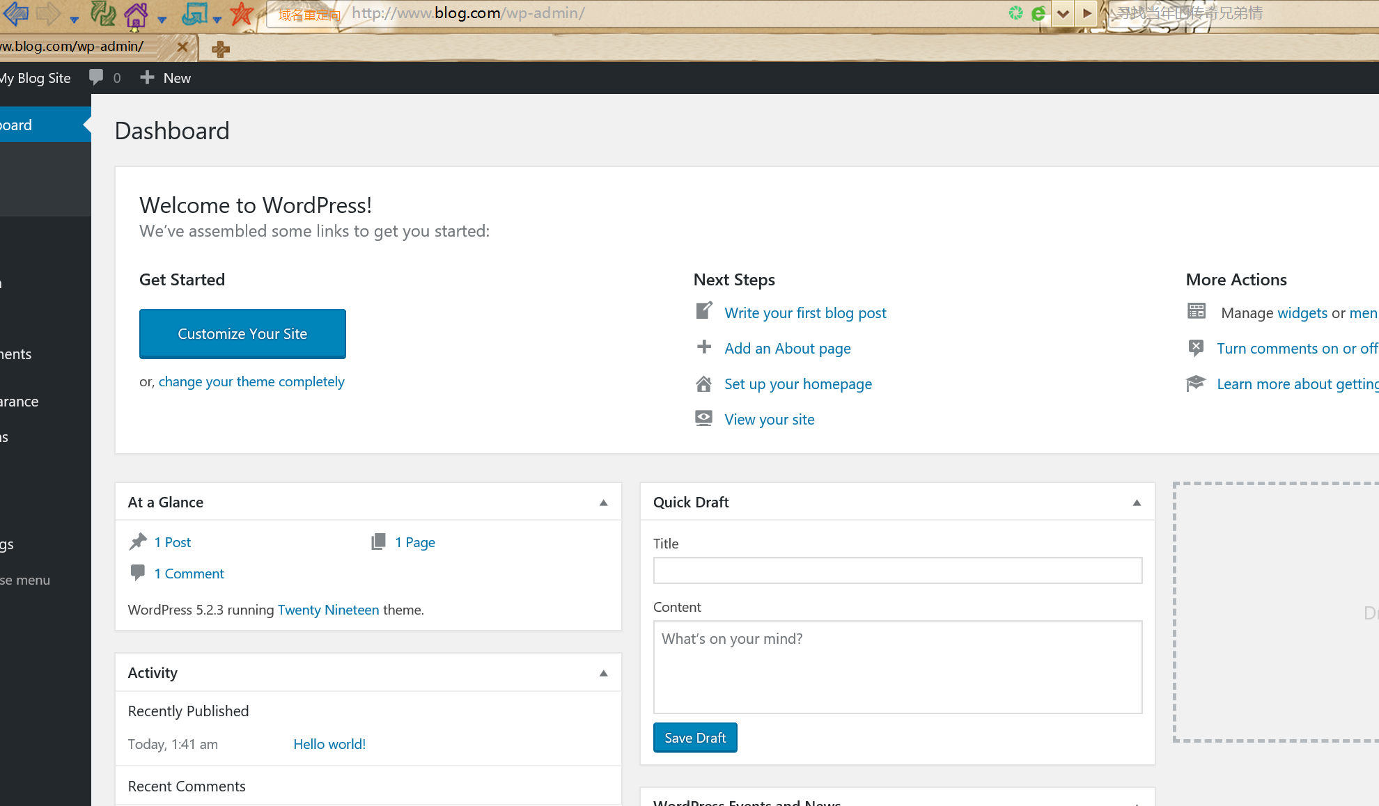 二、部署wordpress论坛,并实现正常访问登录论坛