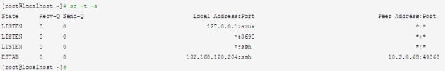 [root@localhost ~]# ss -o state established '( dport = :smtp or sport = :smtp )'