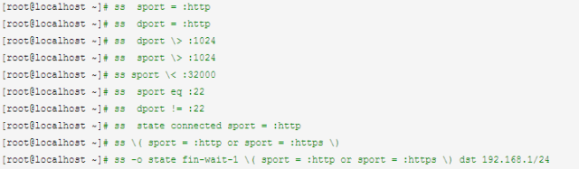 ss dport OP PORT 远程端口和一个数比较;ss sport OP PORT 本地端口和一个数比较。