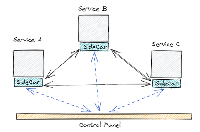 简答来说,sidecar会提供服务请求的代理,也就是说,每个服务pod都通过自己的sidecar来进行集群的内部访问。这种部署是不需要写进代码里。