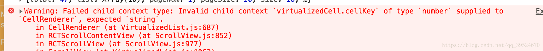 ReactNative问题: Failed child context type: Invalid child context `virtualizedCell.cellKey` of type `number` supplied(转)