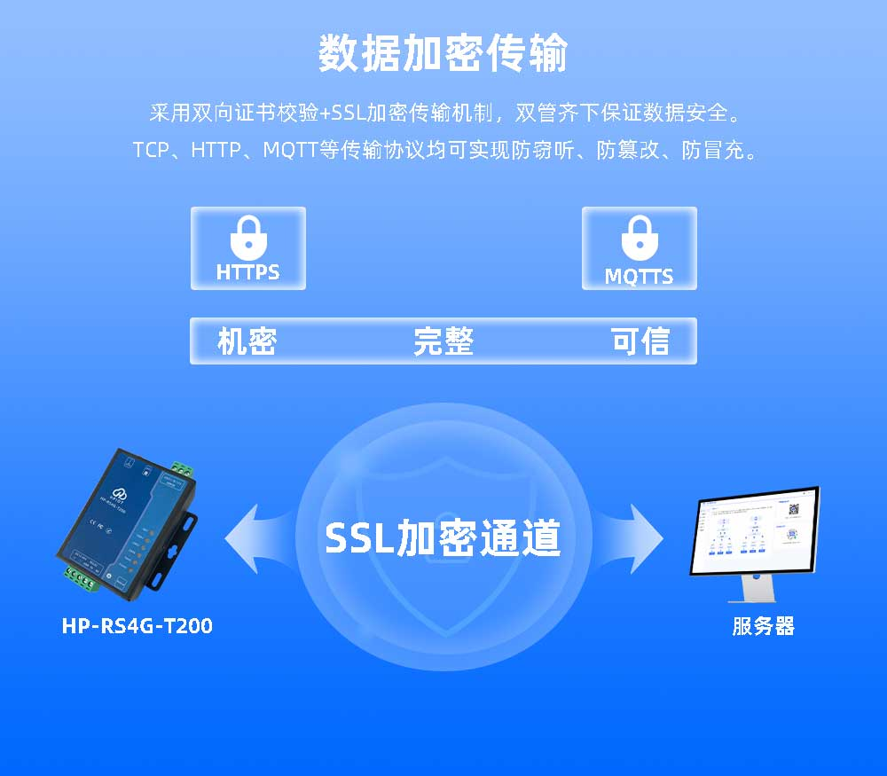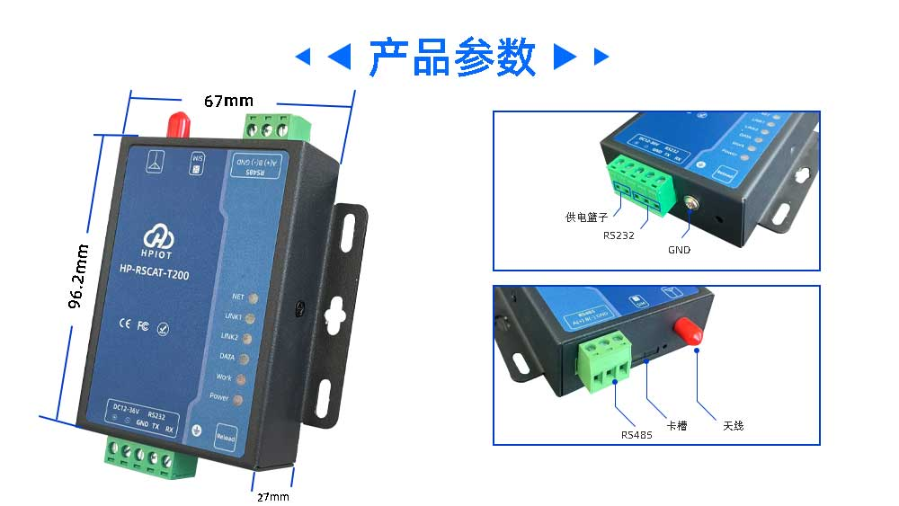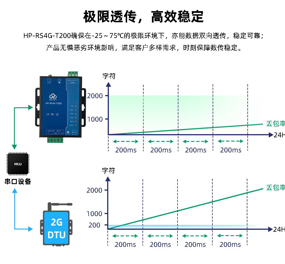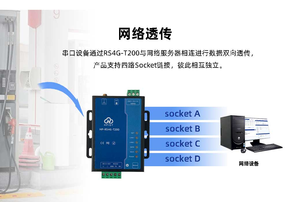HP-RS4G-T200是华普物联网推出的高可靠性、高速率、低延迟的 4G DTU。支持三大运营商4G网络接入,产品采用工业级设计标准,内置独立硬件看门狗,采用 RS232 和 RS485 两种标准端子接口,RS485完全独立电器隔离,支持多路SOCKET,同时可连接四个服务器,支持自定义心跳包/SN心跳包/1CCID心跳包/1ME心跳包,支持自定义注册包/SN注册包/ICCID注册包/IMEI注册包。