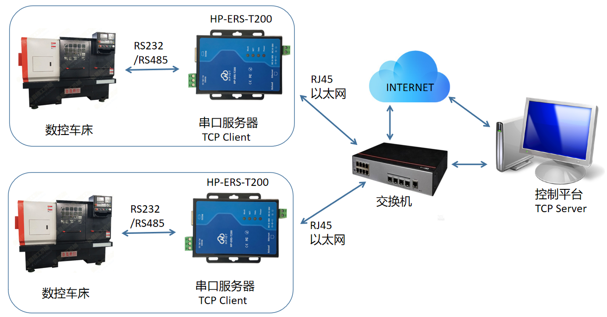 华普物联串口服务器HP-ERS-T200 TCP Client 模式在数控车床中的应用