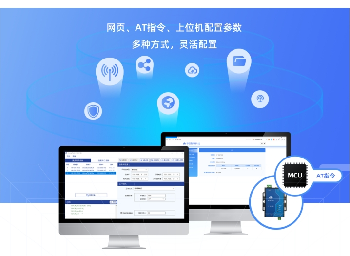 网页、AT指令、上位机配置参数。多种方式,灵活配置