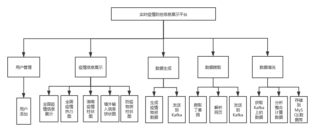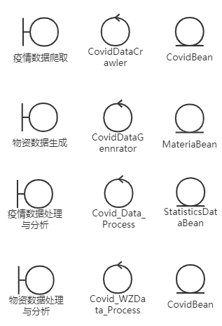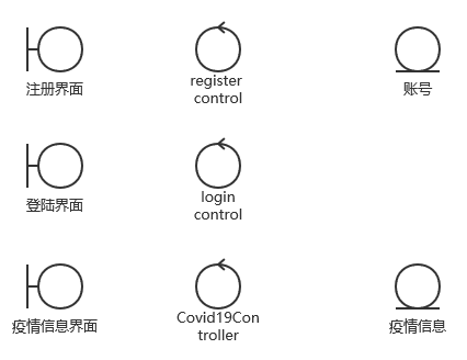 本系统一共设计规划出6个实体,分别是用户信息实体、全国疫情信息实体、全国各省份累计确诊数实体、湖南省疫情信息实体、境外输入信息实体、防疫物资信息实体。