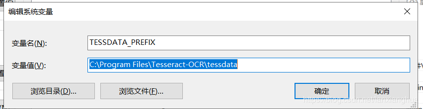 在系统变量里,创建一个新的变量名为:TESSDATA_PREFIX,值为:C:\Program Files\Tesseract-OCR\tessdata(根据自己安装的tesserocr安装路径为准),如下图。