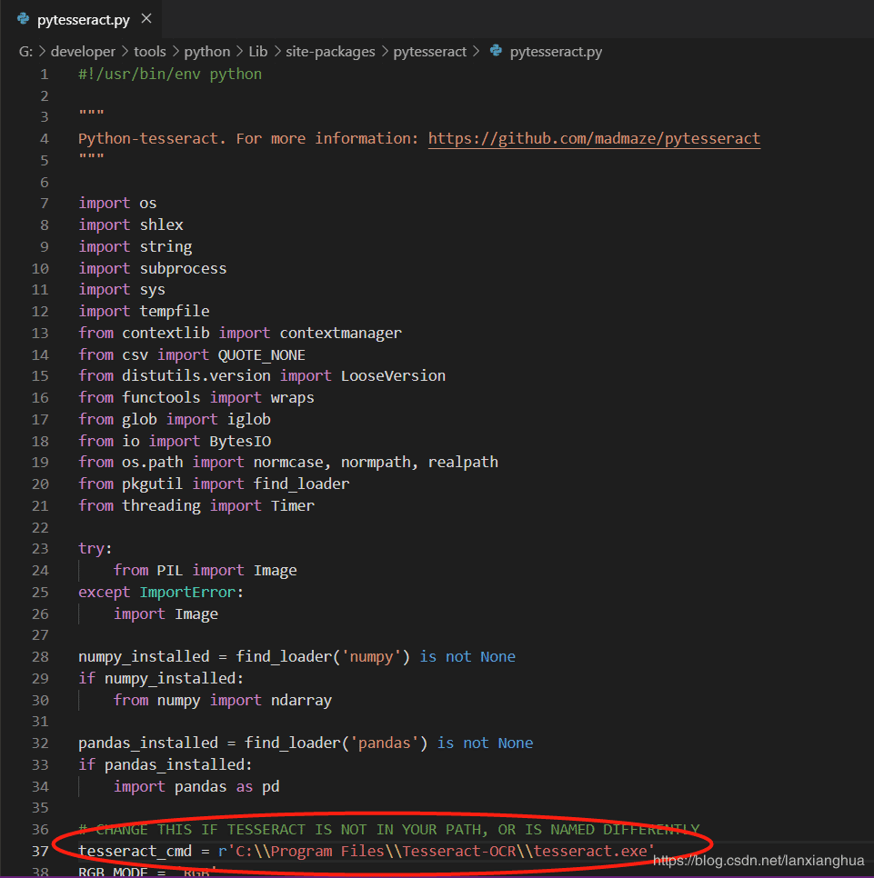 打开pytesseract.py,将Window的tesserocr应用的tesserocr.exe绑定好。
