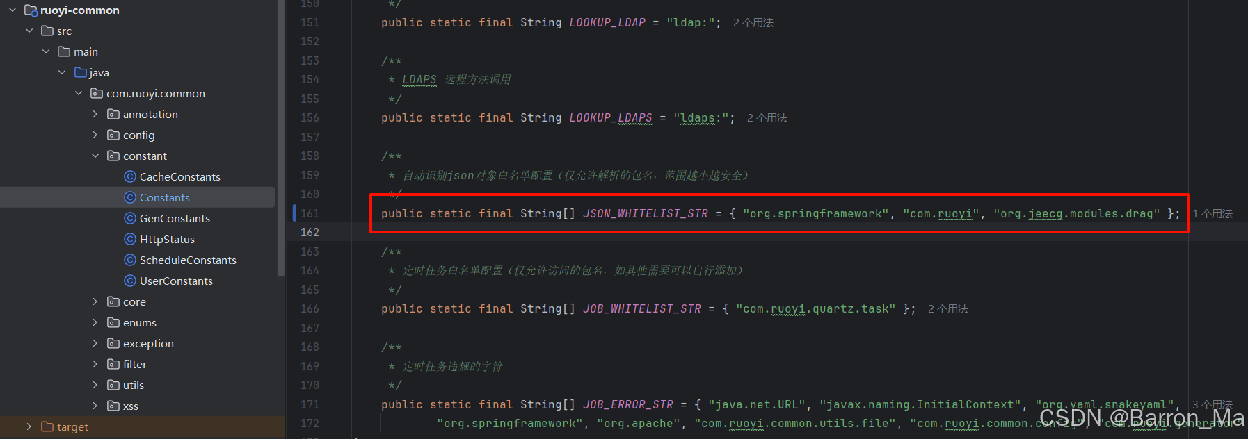 打开ruoyi-common模块中Constants文件,修改161行
