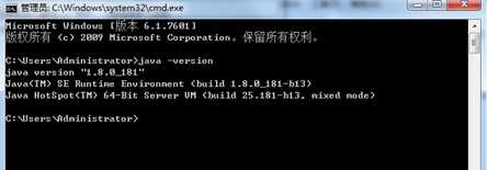 在系统path里面增加jdk的bin目录,设置完成后,打开cmd窗口,输入java -version验证java 安装是否成功。
