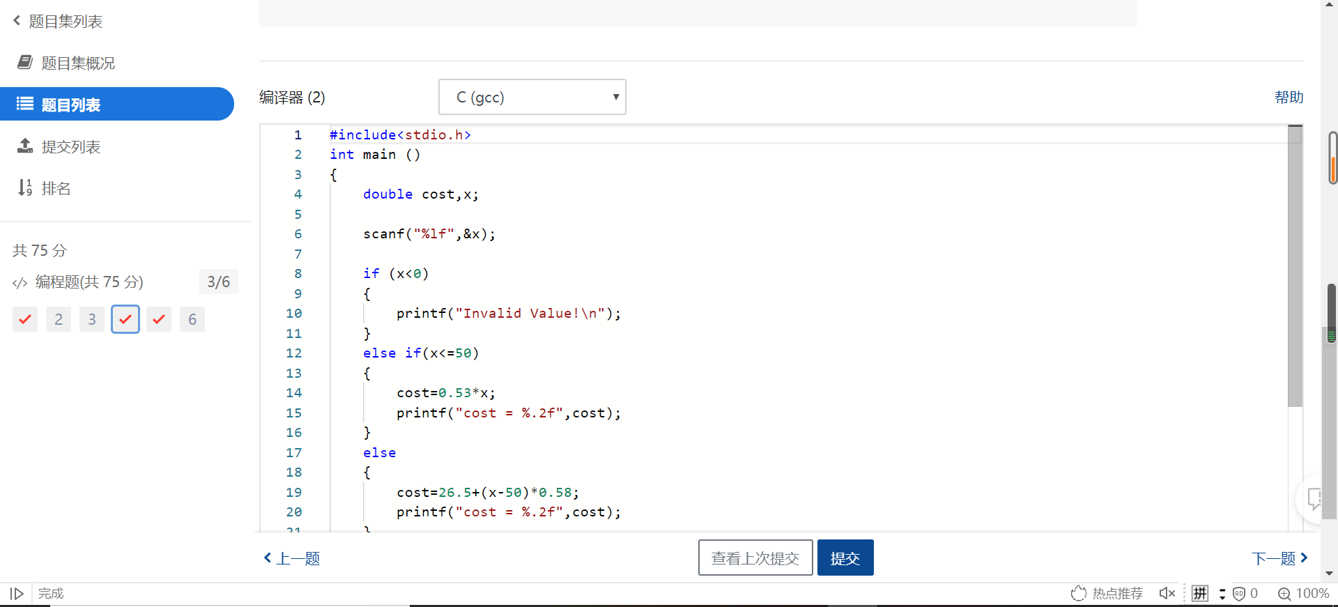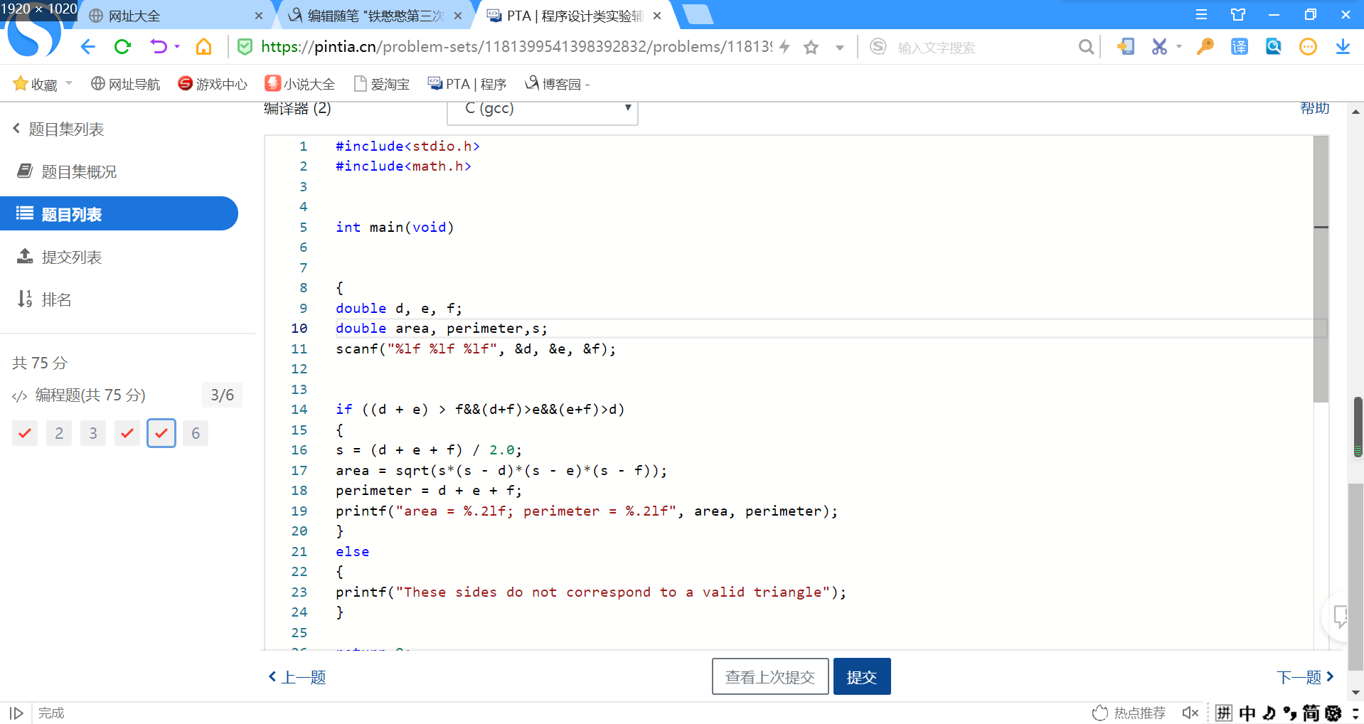 我一开始不知道&&是个什么意思,我一直都是用or,后来问了大佬才改成&&,然后就一直是部分正确,一直都是第一步答案错误,我就一直在第一步那里微调然后还是一直错,最后我把int改成double,再把%d改成%lf然后对了。