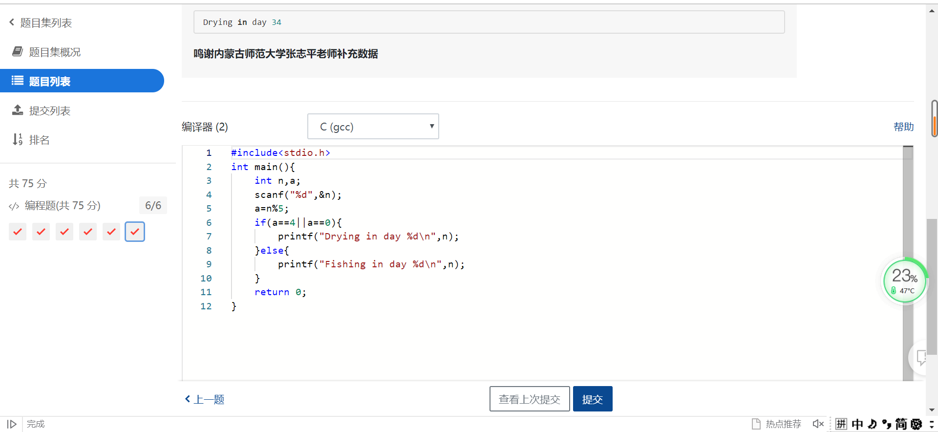 这个题目我一开始就看了别人的答案,所以我做起来比较轻松,但是没有一次过原因是我单词打错了,后面认真的查看了一遍后发现我把main总是打成mian,下次得小心了。