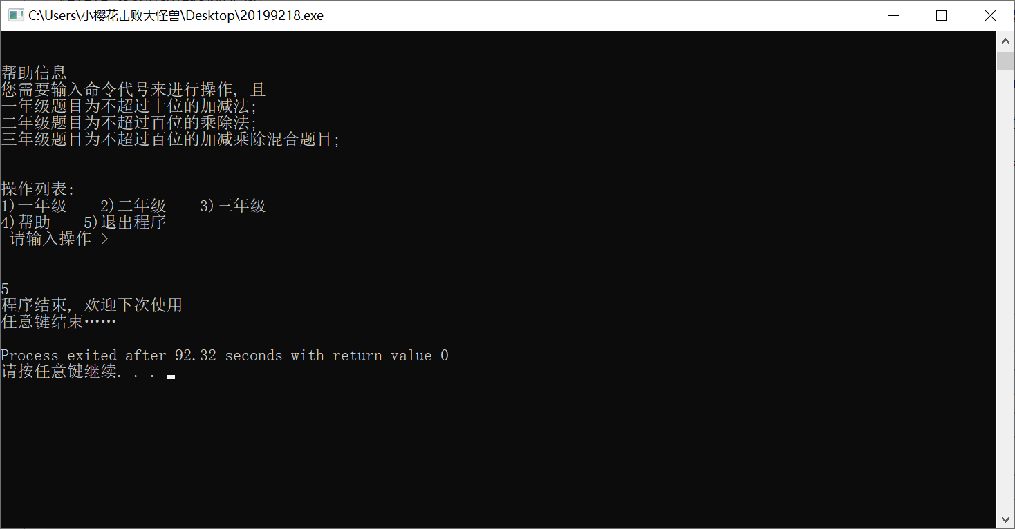 4)主函数最后的return 0;也很有意思要是他在主函数最后,我发现这个函数可以一直执行下去,按5并不会结束程序。所以我调到case5后面。