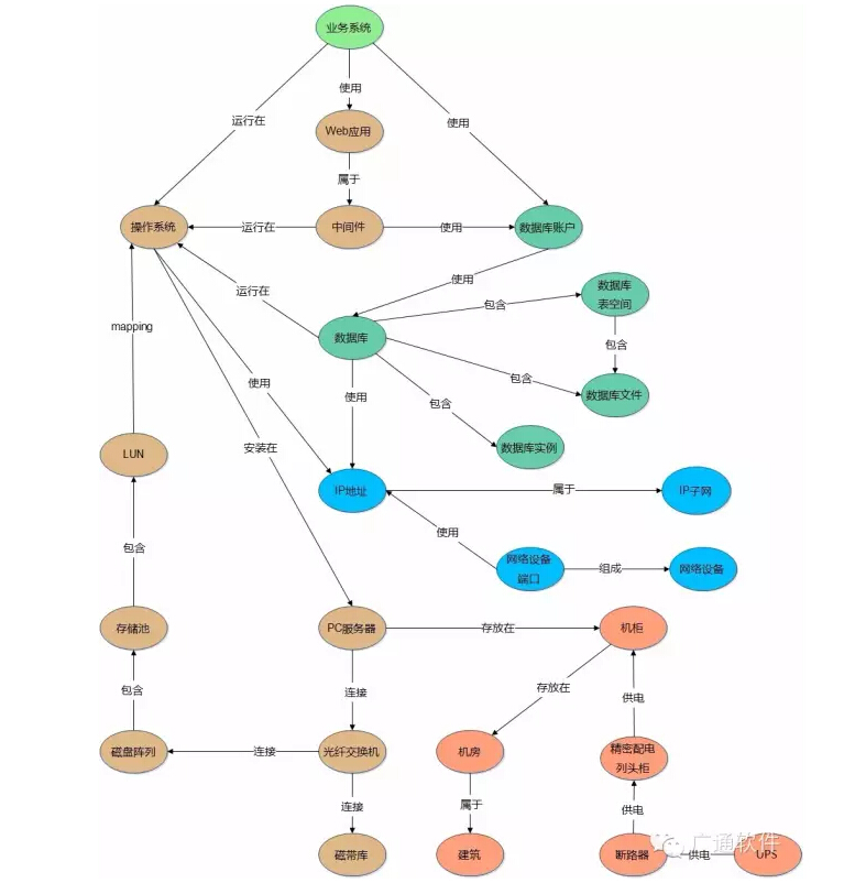 ·自下而上——则是逆流而上,先从对内部IT组件关系开始梳理,然后逐步将IT组件映射到IT服务