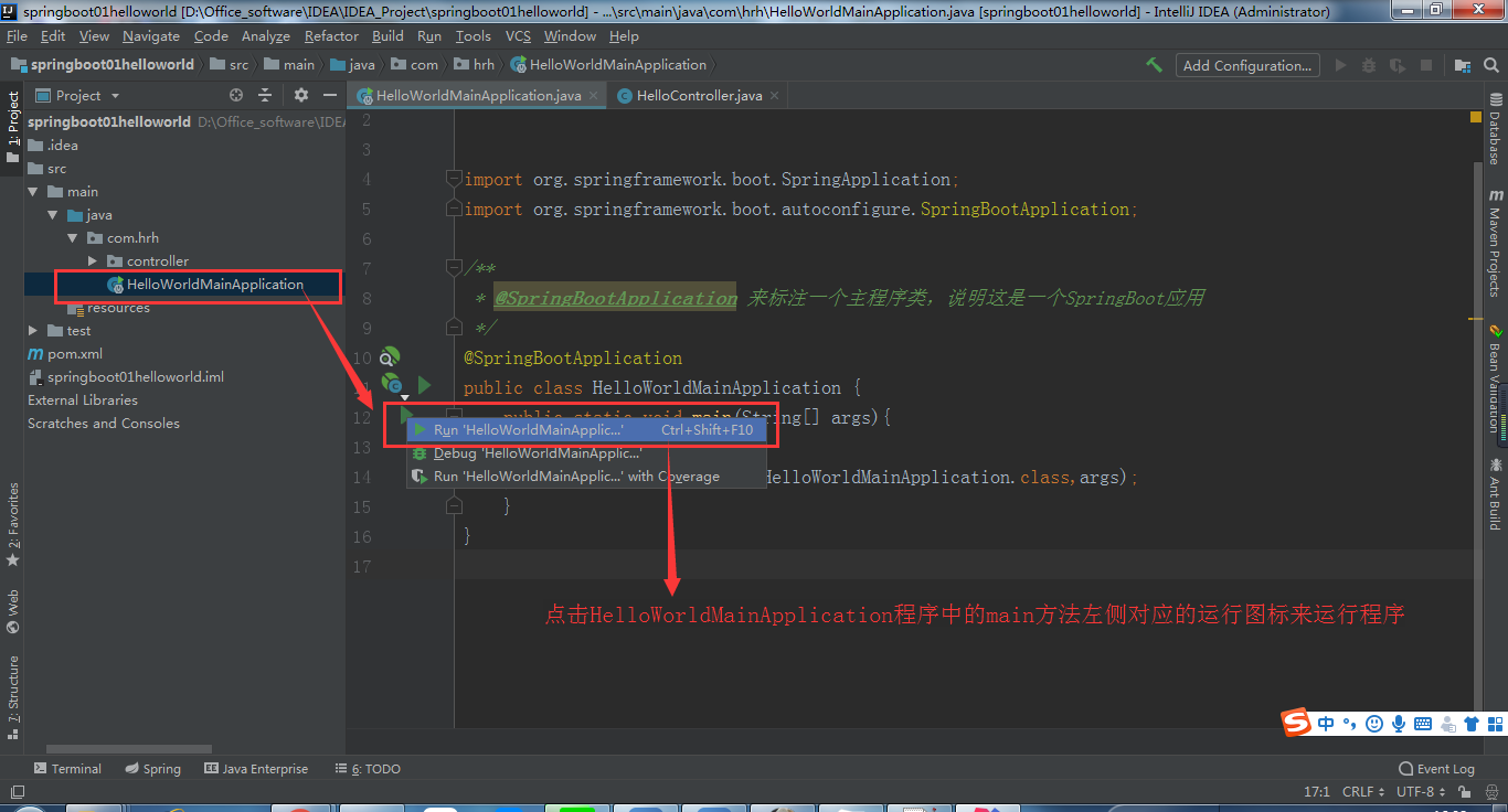IDEA使用SpringBoot创建一个HelloWorld工程