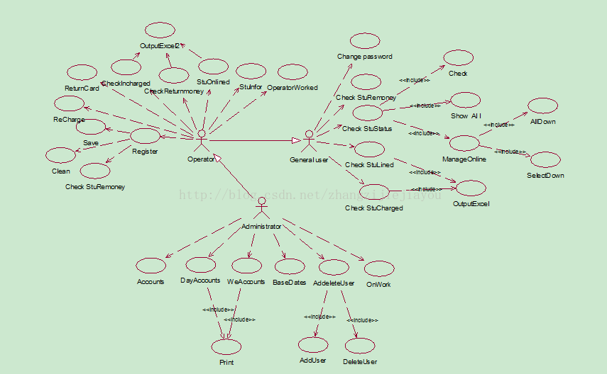 以下是我画的用例图:以用户的权限为基础画出来的。