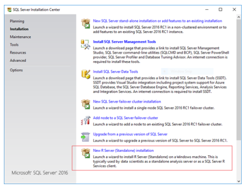 Microsoft R 服务器始终单独安装为独立版本。因此, 一旦您安装了 SQL Server 2016, 您将需要安装 R 服务器, 如果您希望它安装在您的服务器上。