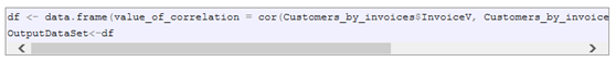 这使用两个变量: Customers_by_invoices $ InvoiceV, Customers_by_invoices $ CustCat 计算两个变量之间的长矛相关系数。结果以具有列名 value_of_correlation 的数据帧的格式存储在可变 df 中。我使用了长矛系数, 因为一个变量是序号和一个区间;如果两者都是间隔时间, 我可以使用皮尔逊相关系数。
