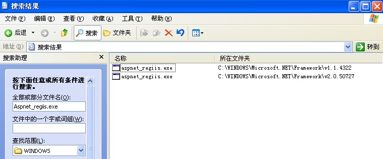 在安装有系统分区里(一般为C盘)的Windows文件下查找“Aspnet_regiis.exe”,一般会查找到多个目录