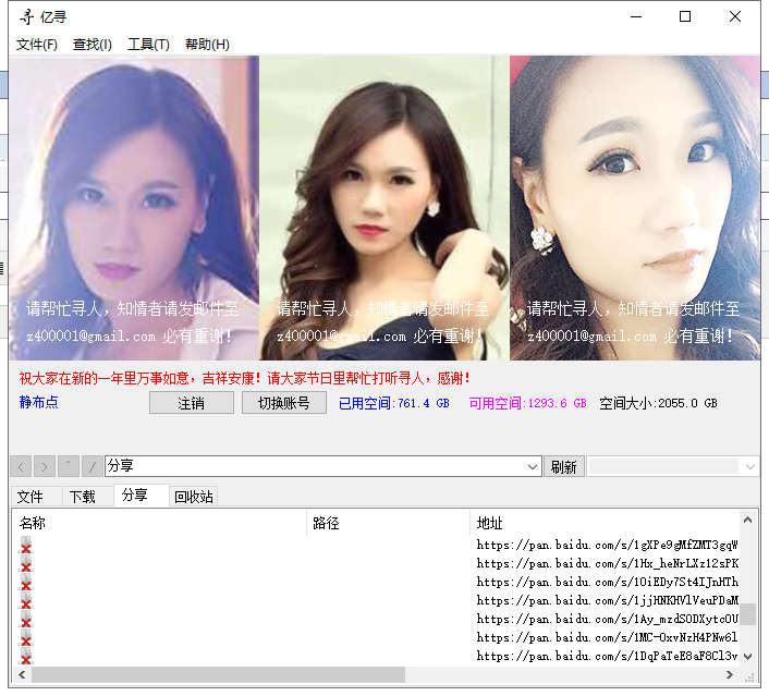 一个百度云的破解限速软件,这个软件作者开发的目的就是为了寻人,推荐给大家。进行更多的传播